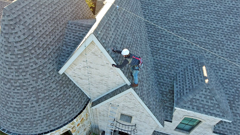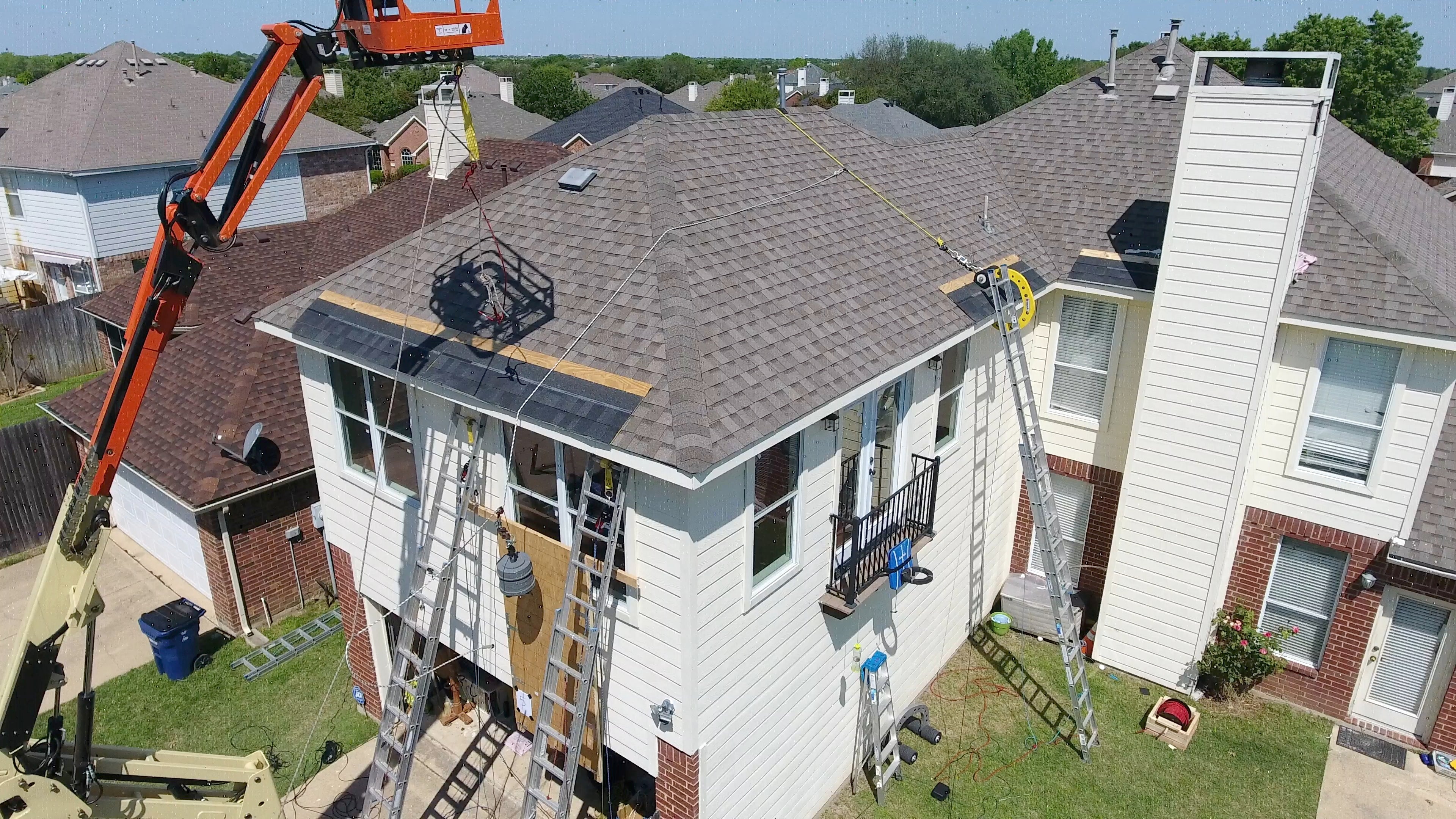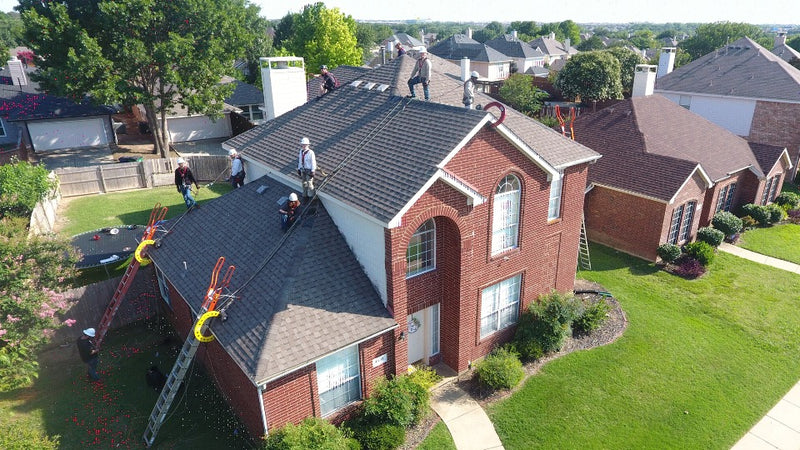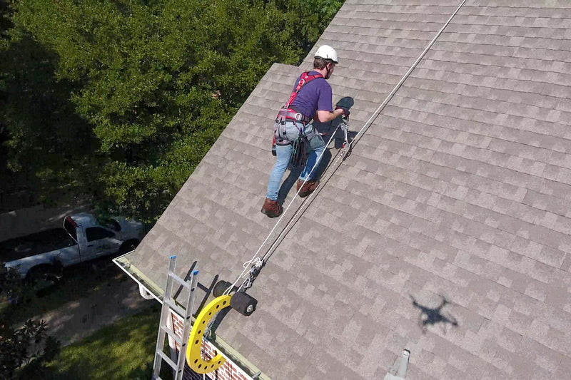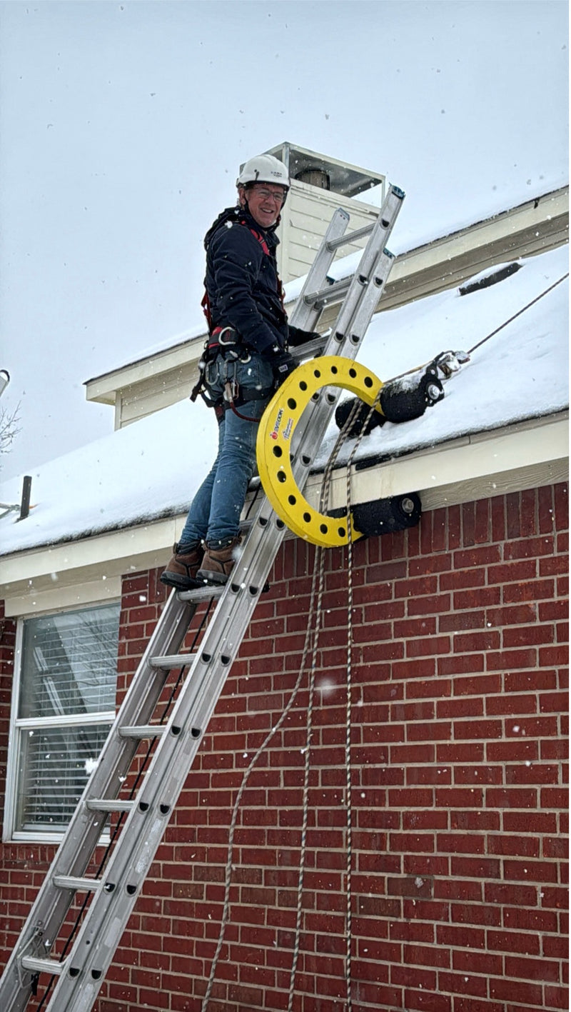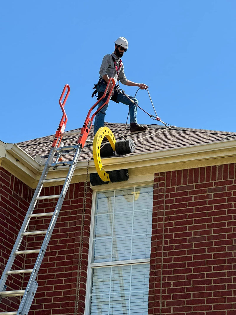 - Workers are protected on the ladder, between the ladder and roof, and on the roof.