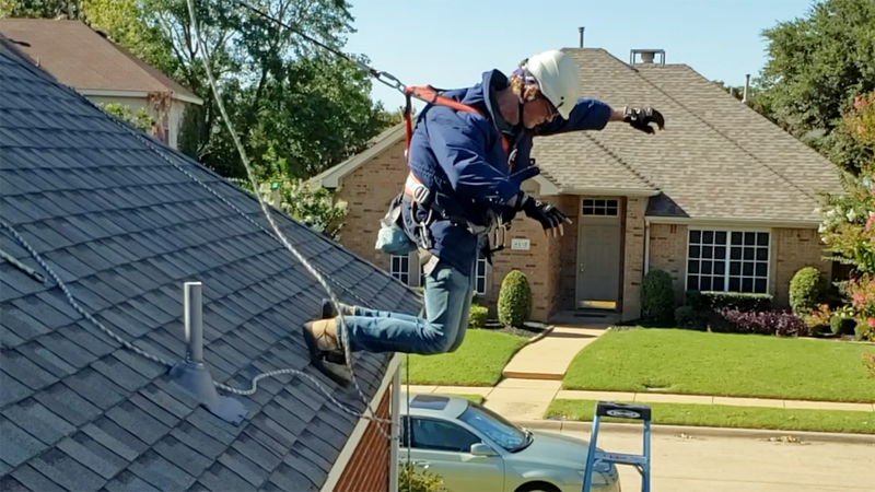 It is common practice in the industry to use single-point anchors, which are often nailed into the roof. The installer is required to risk serious injury, climbing unprotected on to the roof to attach the anchor. Once installed, use of these single point anchors often creates dangerous swing falls that commonly result in the users striking a lower object, such as a chimney or even the ground.