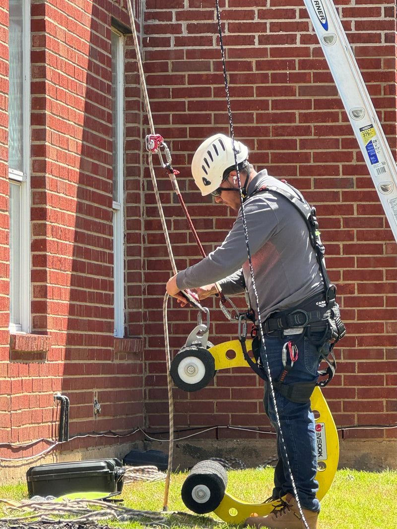 Built with aerospace-grade materials and designed to exceed OSHA standards, our system does what others can’t — it stops falls, reduces deadly swing falls, and protects the installer. Today, we’re proud to equip professionals across the globe with safety gear that’s as serious about their lives as they are about their work.