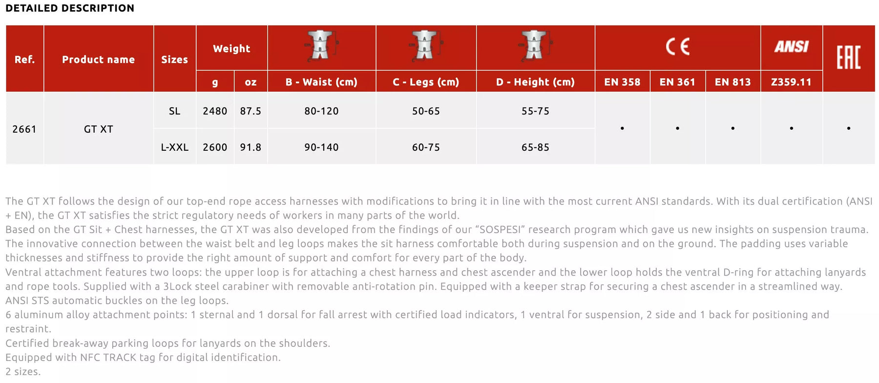 • 1× GT ANSI Full Body Harness
